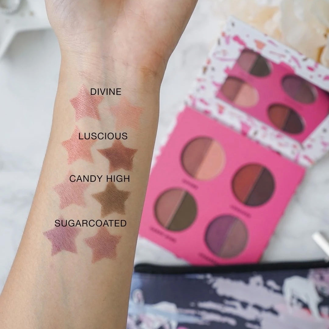 An eyeshadow palette reminiscent of your favorite dessert in shades of red dough, golden crusts, baked browns and scarlet-mauve mixes. Formulated in a scrumptious blend of matte and microshimmer colors that are easy to apply and that will become your everyday essentials.